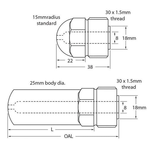 Replacement Demag Style Tip Through-hardened tool steel Thread 24/1.5 Lengths 49, 73, 110 Radius and orifice to suit your application