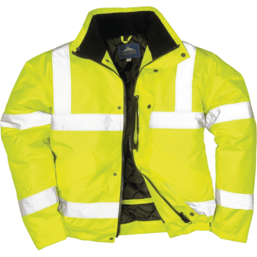 These hi-vis yellow bomber jackets are manufactured from a 100% Polyester, 300 oxford weave, weatherproof fabric with a stain resistant finish, PU ...