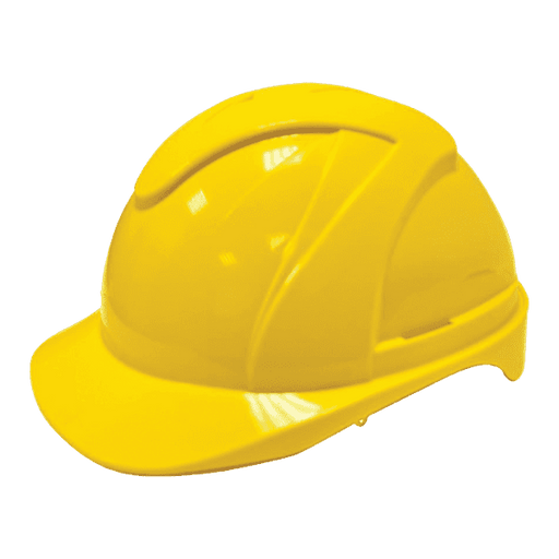 Safety Helmet With 6 Point Harness, Yellow, ABS, Vented