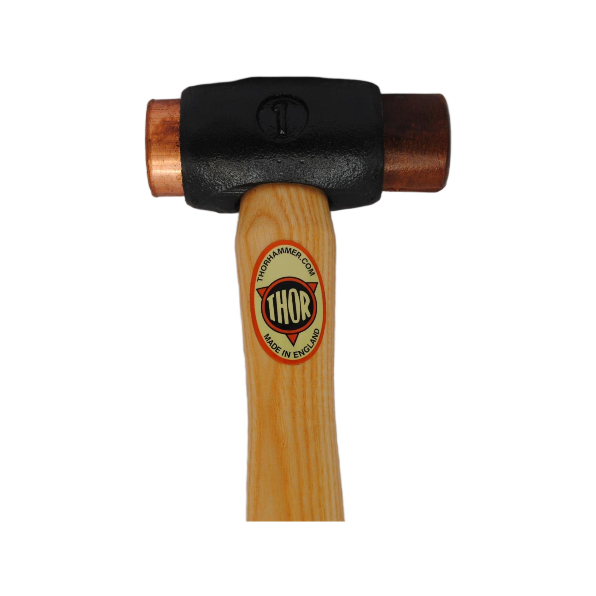 The hammer features a solid copper head, which delivers significant impact force while maintaining control. The copper construction ensures that the hammerhead is non-sparking and resistant to corrosion, making it a safe and durable choice for various industrial tasks.