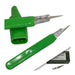 It's bright green poly shell makes this one easy to find or slip in and out of your pocket and has a matching cover for safety. The flat 140mm stainless steel body is lightweight but strong. A quick turn screw releases the replaceable blade which extends only by 16mm from the body.
