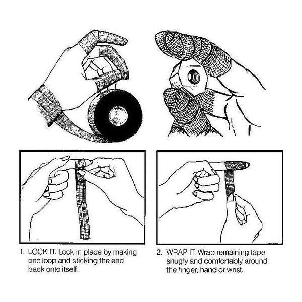 Safety tape sticks to itself - not to the skin. Provides durable finger protection when working with sharp items. Allows skin to breathe naturally and does not reduce finger sensitivity. Protects finger tips without hindering operational precision.